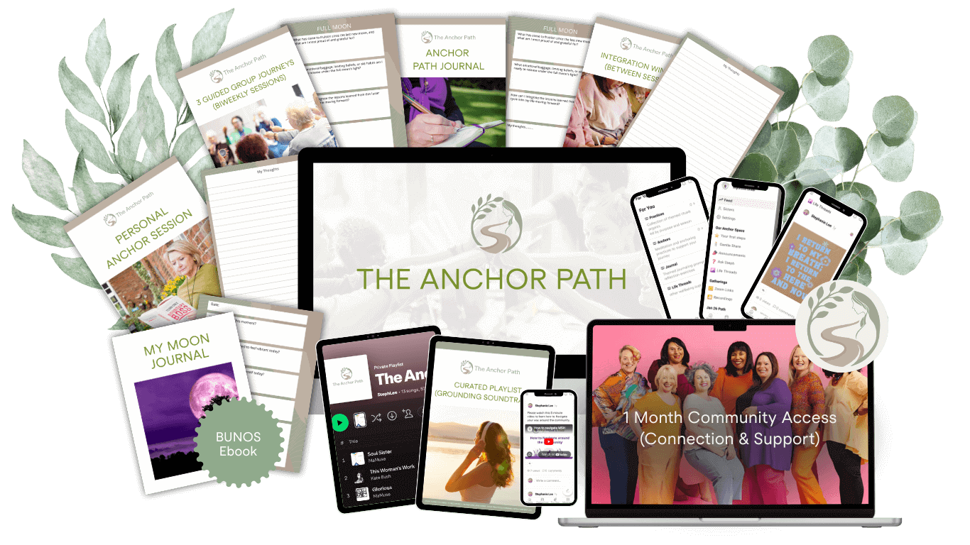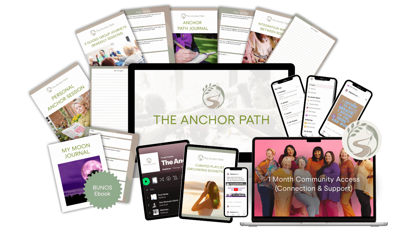 The full 7-week journey, including your personal Anchor Session, three guided group journeys, integration support, journal prompts, your Anchor Path journal, curated playlist, and a free month in the community, is available for:
